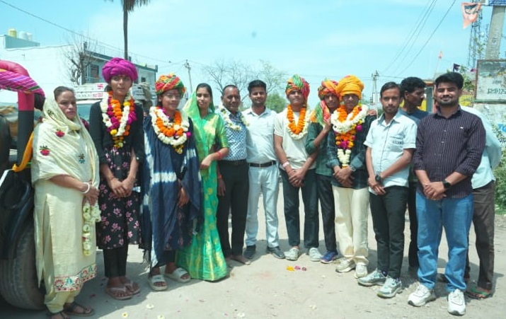 अशोक नगर बड़ानयागांव के बाजार में प्रतिभाओं का स्वागत करते हुए ग्रामीण।