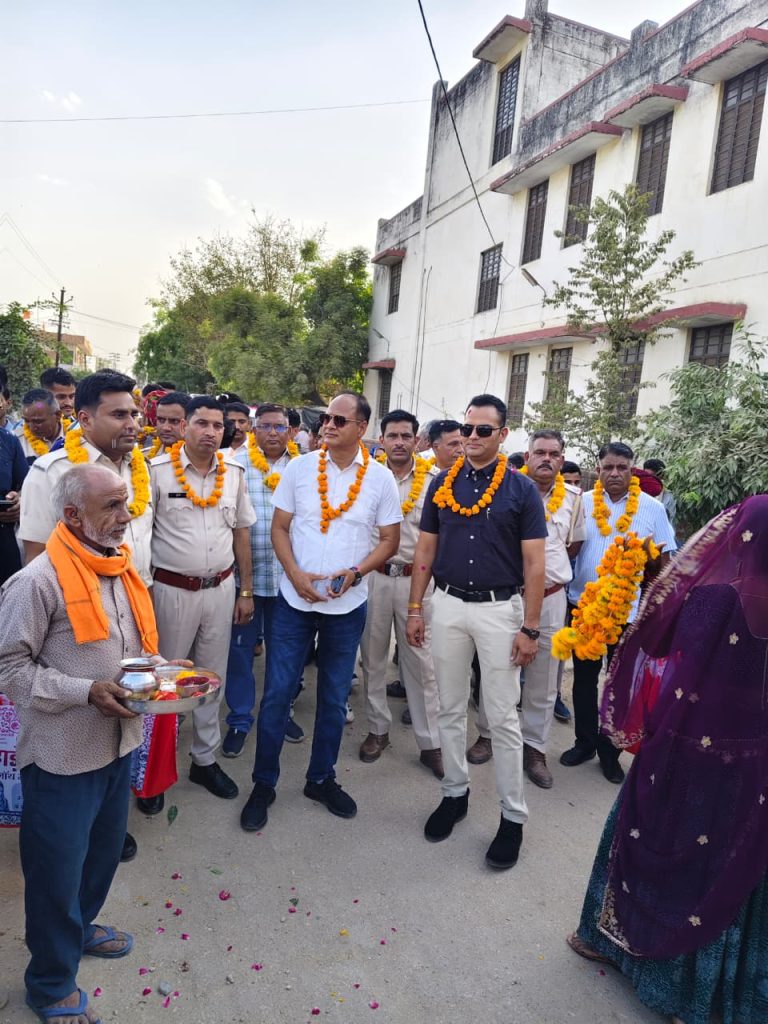 हिंडोली पुलिस थाने से गाजे‑बाजे के साथ पूरा पुलिस परिवार तहसील चौराहे से निकला और हिंडोली माली छात्रावास में पहुंचा। इस दौरान रास्ते‑रास्ते व्यापारियों ने पुष्प वर्षा कर पुलिस स्टाफ का स्वागत किया, जिससे यह आयोजन उत्साह और भक्ति भरा लगातार बढ़ता गया। चारों तरफ ग्रामीण राजस्थान पुलिस की सराहना करते दिखे, जिससे यह संदेश गया कि पुलिस सिर्फ कानून व्यवस्था ही नहीं, बल्कि संवेदनशील और मानवीय संबंधों का सही अर्थ भी जानती है।